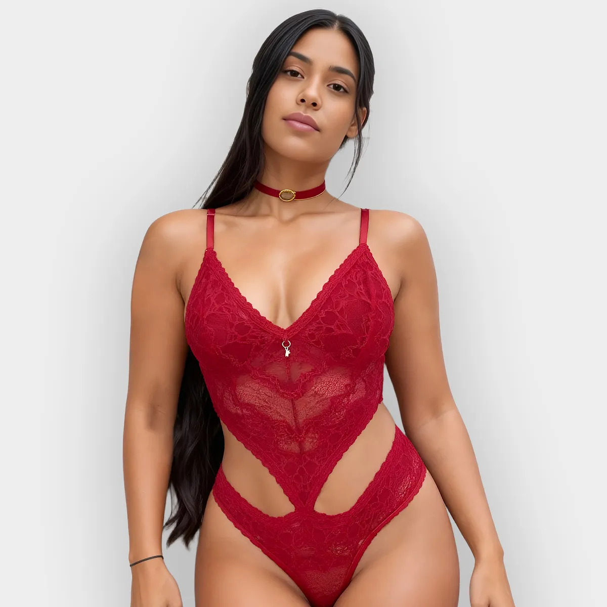 Este Body Sexy Rendado é a personificação da sedução e do romantismo. É uma peça pensada para surpreender, combinando a delicadeza da renda com um toque de brilho e um design que valoriza o corpo de forma ousada.